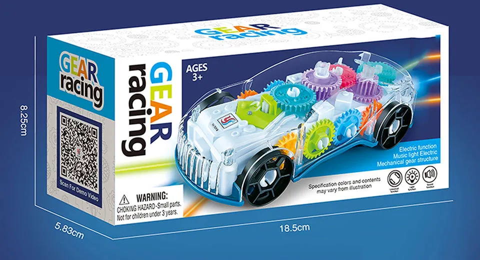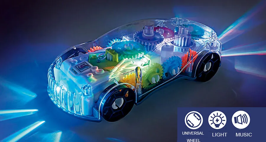 Gear Racing Transparent Car Colorful Mechanical Gears with Lights & Music (Electric Function)